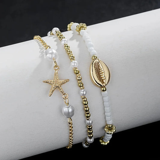 Bracelet cheville Étoile Dorée Imperméable 3 Pièces