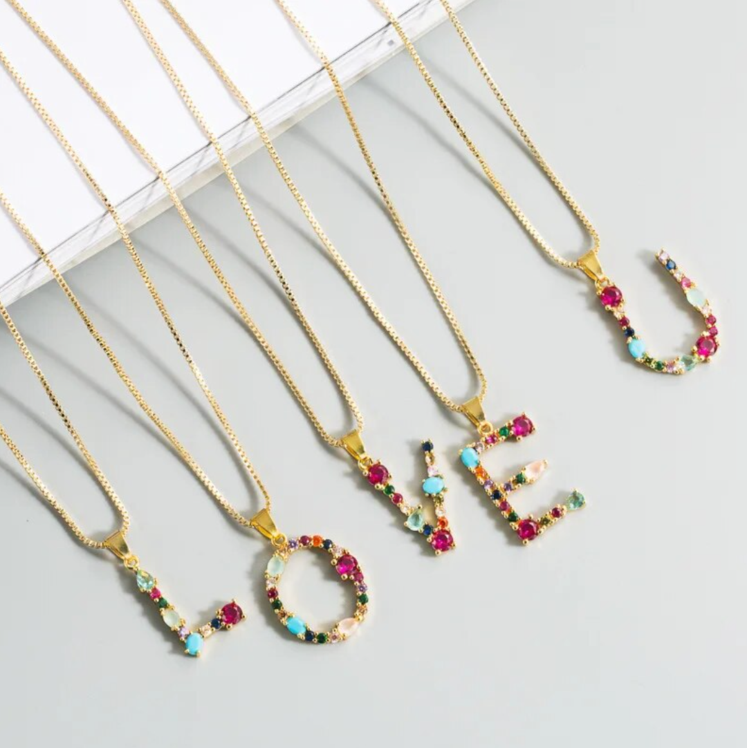 Collier avec Initiales et Pierres Précieuses Dorées de 18 Carats
