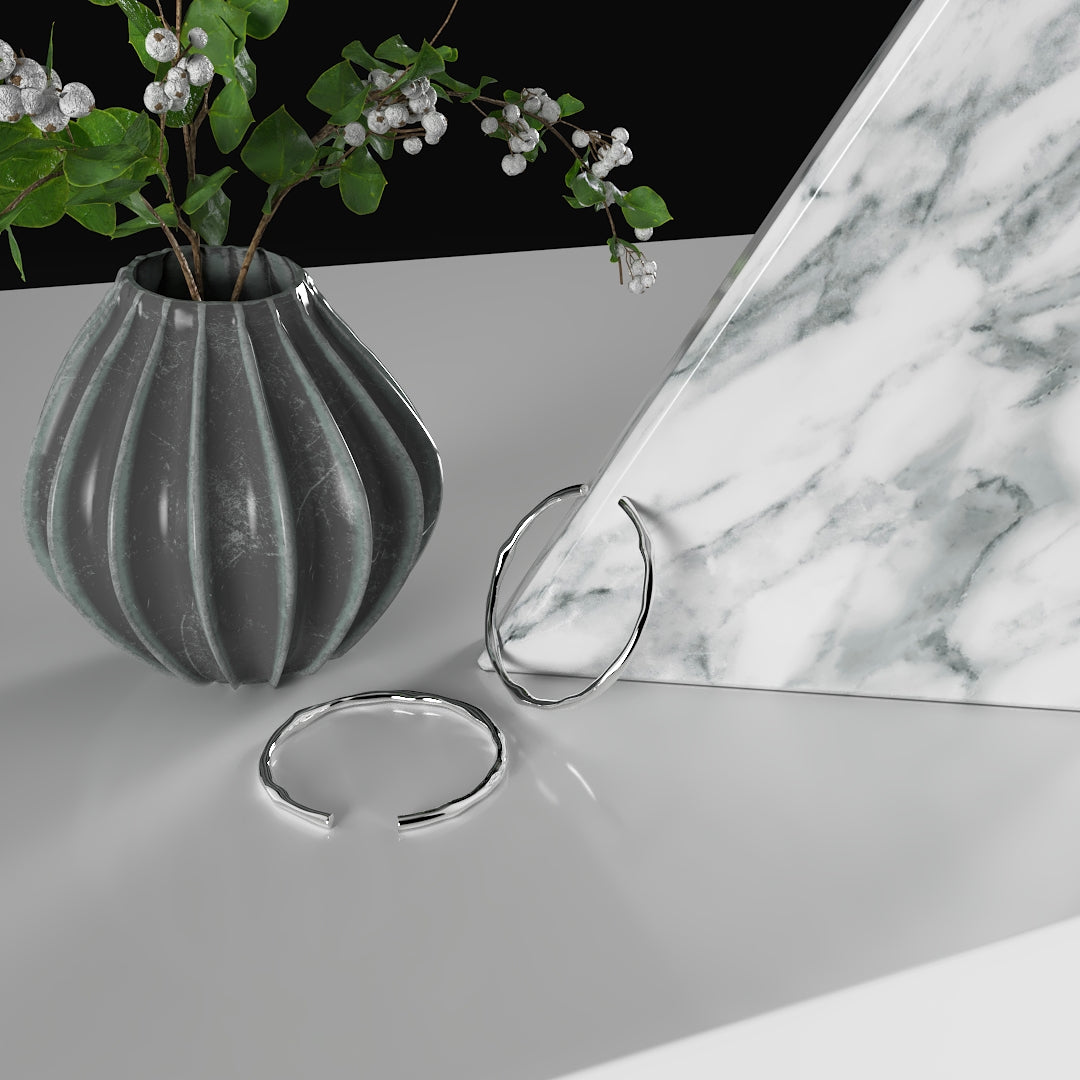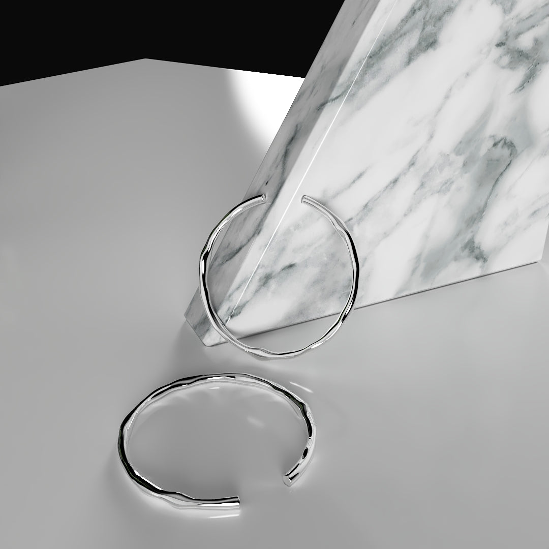 Bracelet Épais d'Argent 925 Ajustable de Forme Irrégulière
